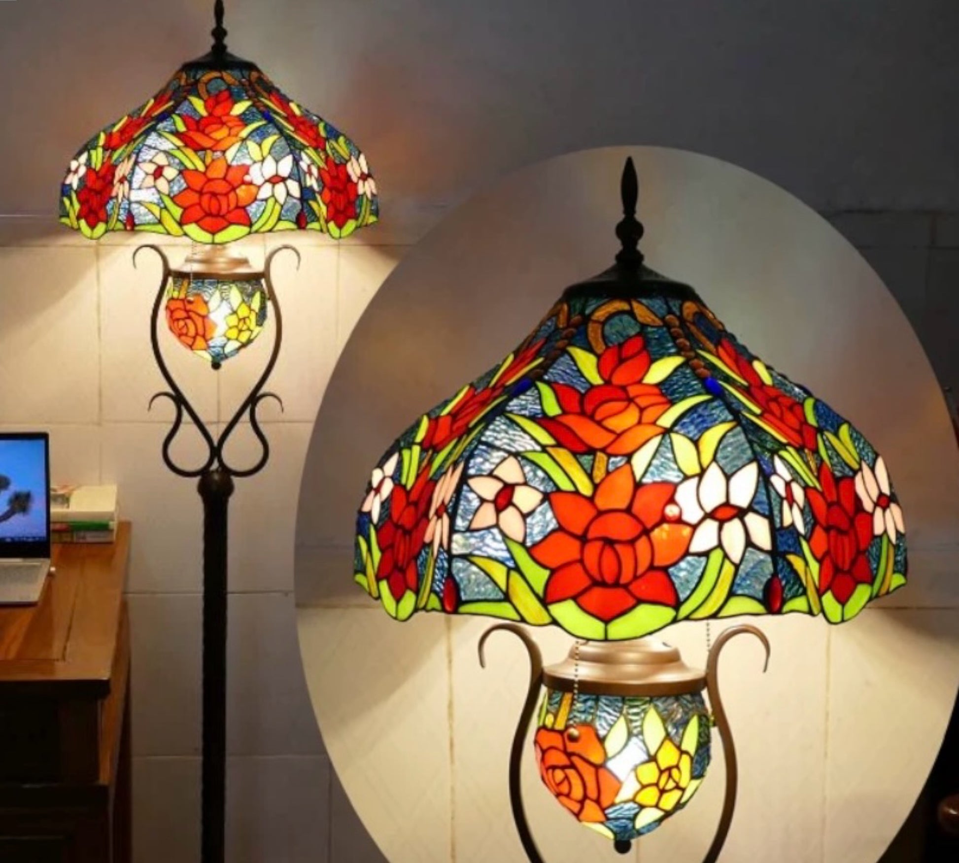 Tiffany Mother-Daughter Vase Floor Lamp X-LARGE 46cm Shade