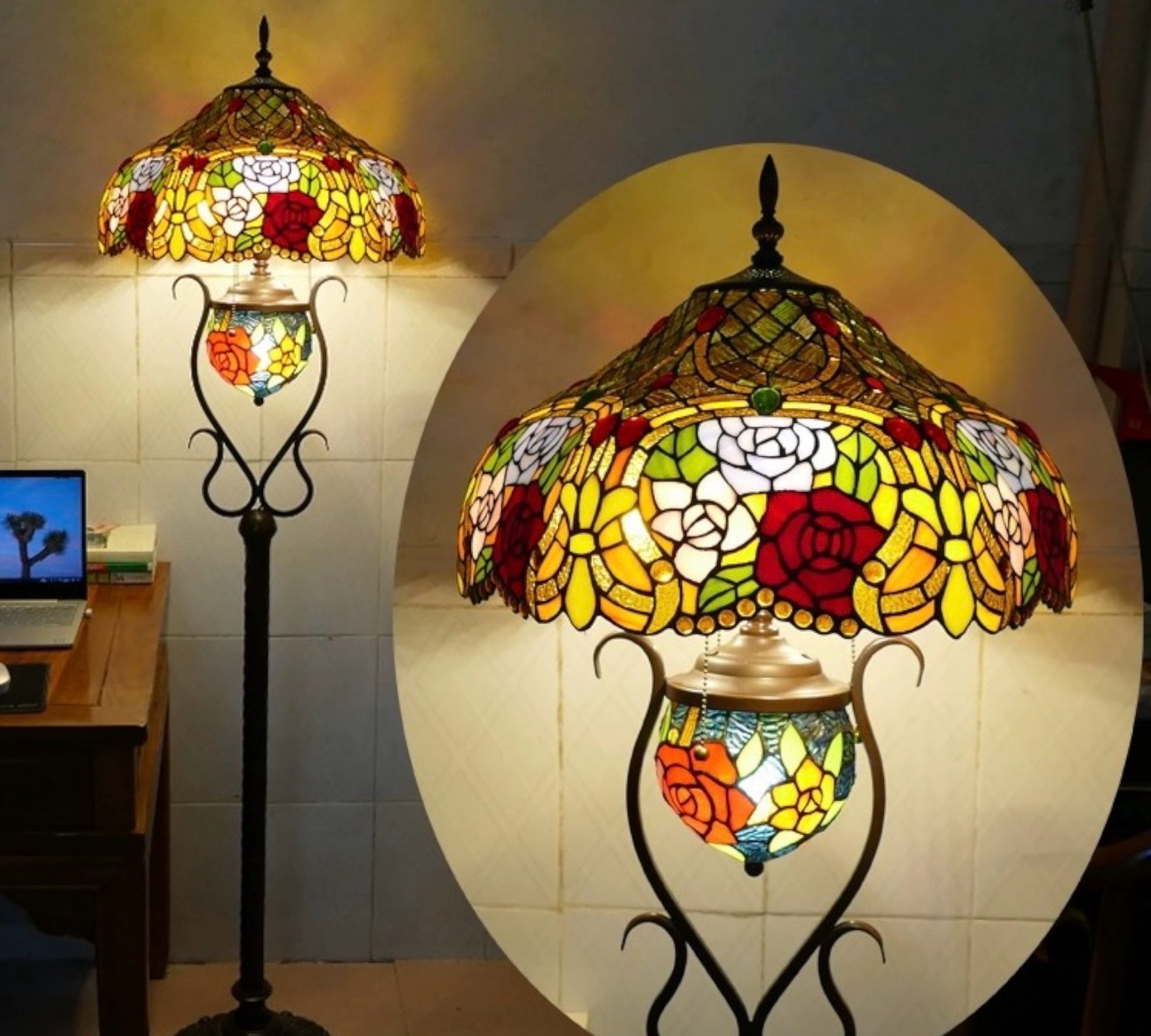 Tiffany Mother-Daughter Vase Floor Lamp X-LARGE 46cm Shade